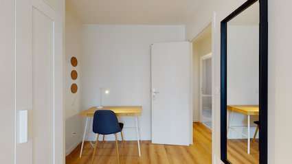 "Room 4" est parfaite pour une personne. Elle a un lit confortable pour bien dormir, une armoire pour ranger vos affaires, un bureau et une chaise pour travailler ou étudier. La chambre mesure 9m² et vous partagerez une salle de bain moderne avec quelques voisins.