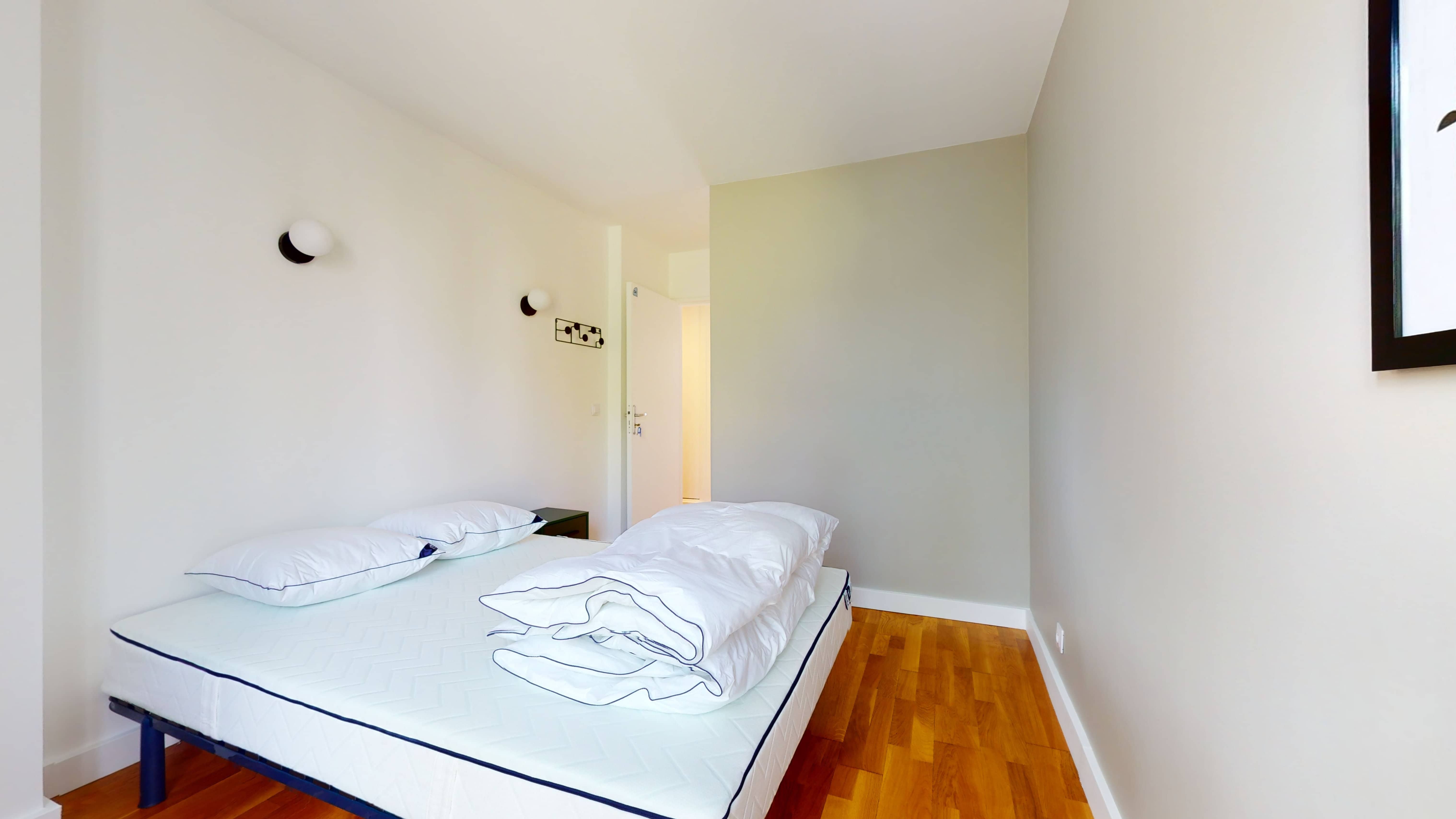La chambre 4, d'une superficie de 11 m², est parfaite pour une personne. Elle comprend un lit double confortable, une armoire pour vos affaires, un bureau et une chaise pour travailler ou étudier, et bien d'autres équipements pratiques. La chambre partage une salle de bain moderne avec d’autres résidents.