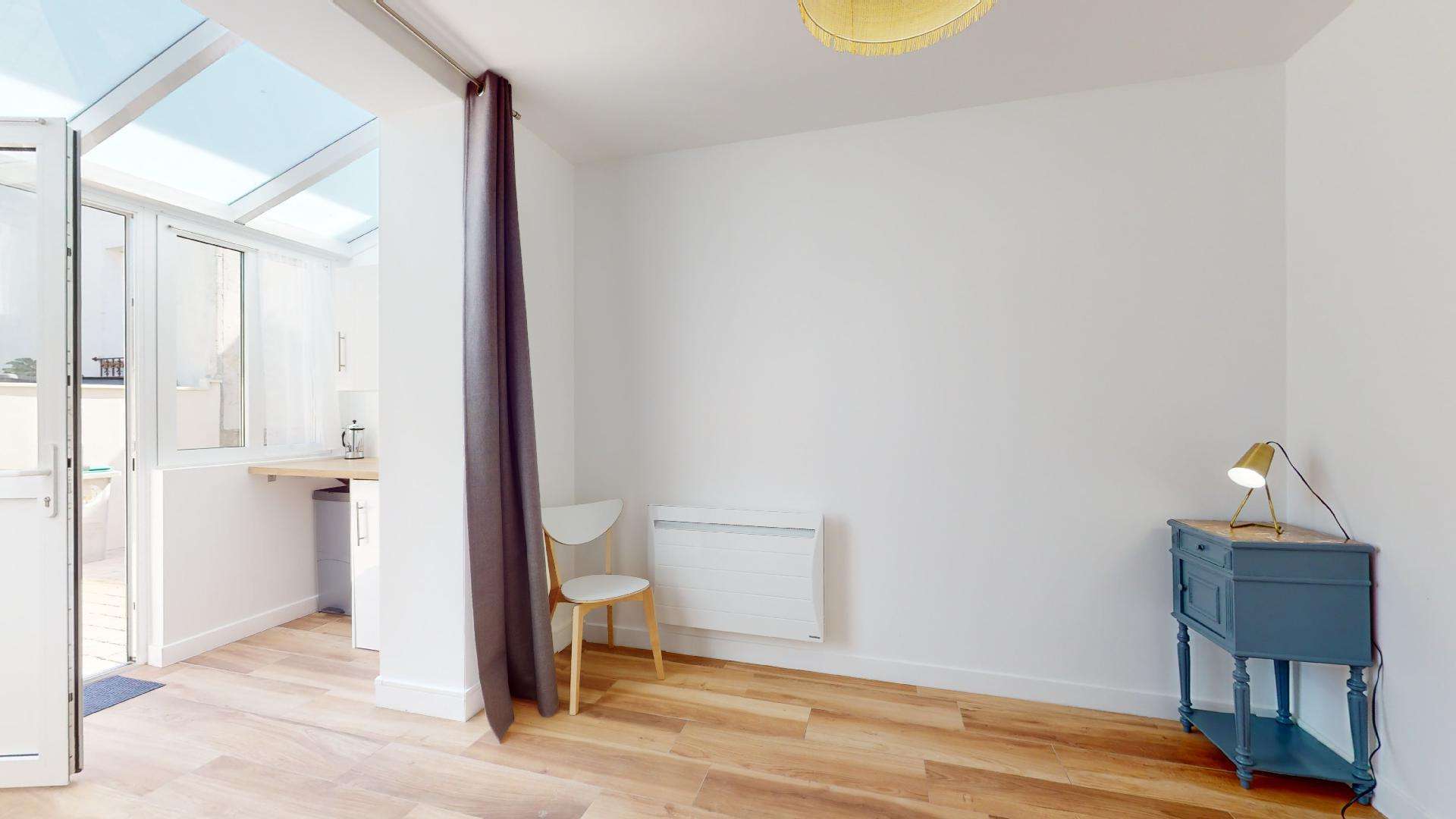 Votre future chambre est située au rez-de-chaussée et est conçue pour accueillir confortablement deux personnes. Elle dispose d'un lit double douillet, d'une armoire spacieuse pour vos affaires, d'un bureau et d'une chaise pour travailler ou étudier, et d'une salle de bain privative avec douche. Vous bénéficierez également d'un accès direct à la terrasse pour prendre l'air quand vous le souhaitez.