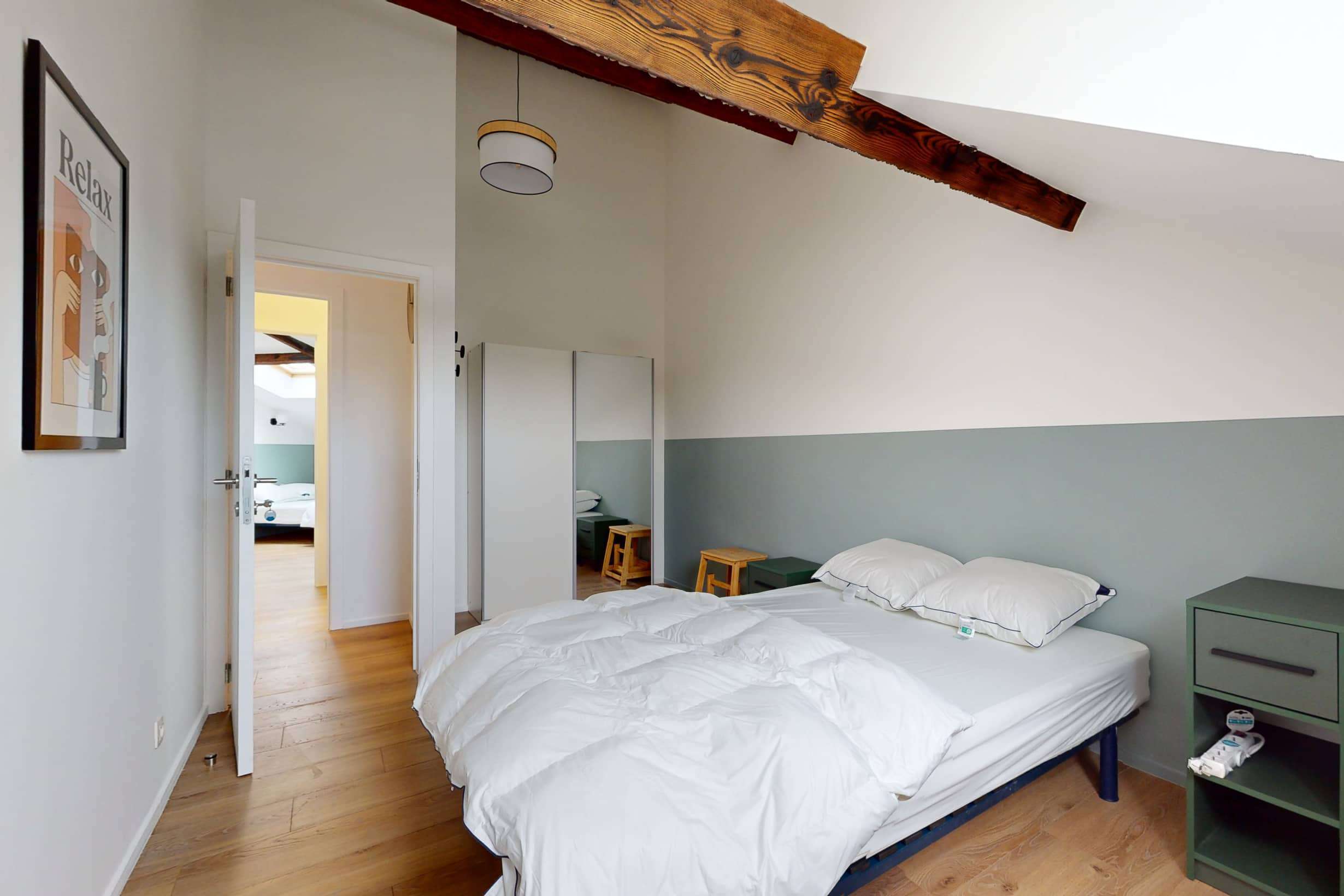 Welcome to "Bruxelles Usines," a friendly and well-equipped shared apartment. With a spacious open kitchen that leads into the living area, this co-living space is perfect for a communal lifestyle. The apartment includes 7 bedrooms, a bathroom, 3 shower rooms, 2 separate toilets, and a laundry room. The communal kitchen is fully fitted with modern appliances including a fridge, dishwasher, oven, microwave, coffee machine, toaster, kettle, and all the necessary plates, cutlery, and glassware. There's also high-speed internet throughout the house and various support services to ensure everything runs smoothly.